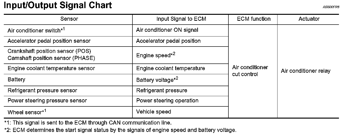AIR CONDITIONING CUT CONTROLInput/Output Signal Chart