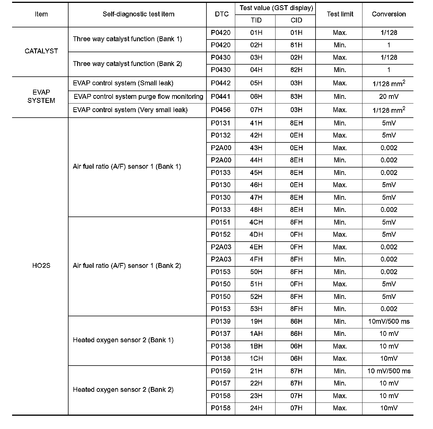 TEST VALUE AND TEST LIMIT (GST ONLY - NOT APPLICABLE TO CONSULT-II)