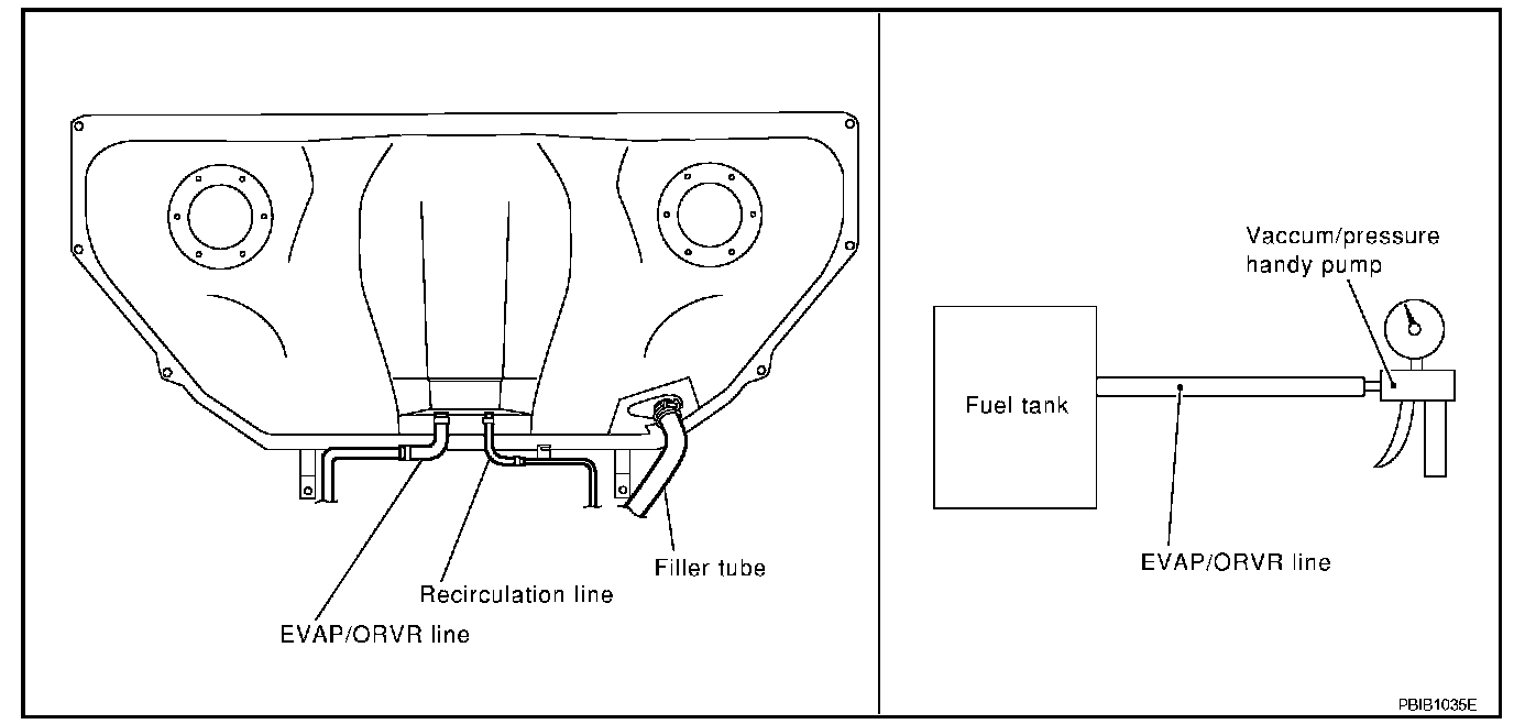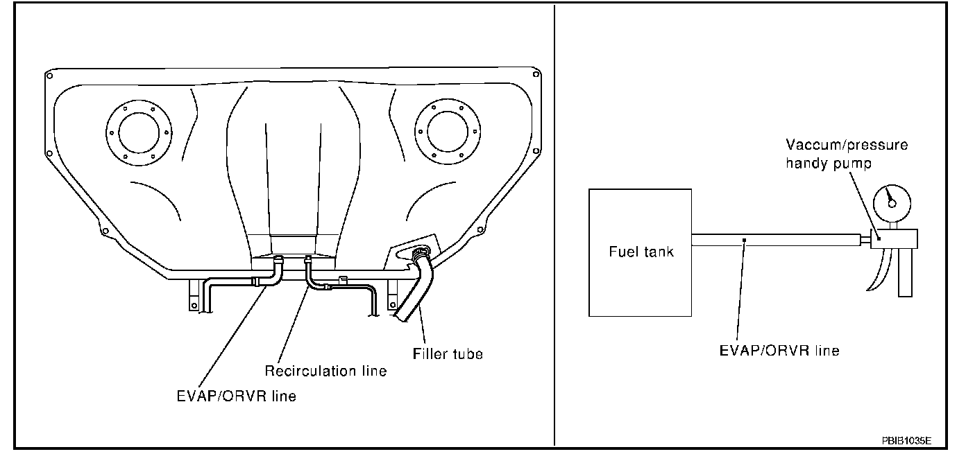 4. Check refueling EVAP vapor cut valve for being stuck to open as follows.