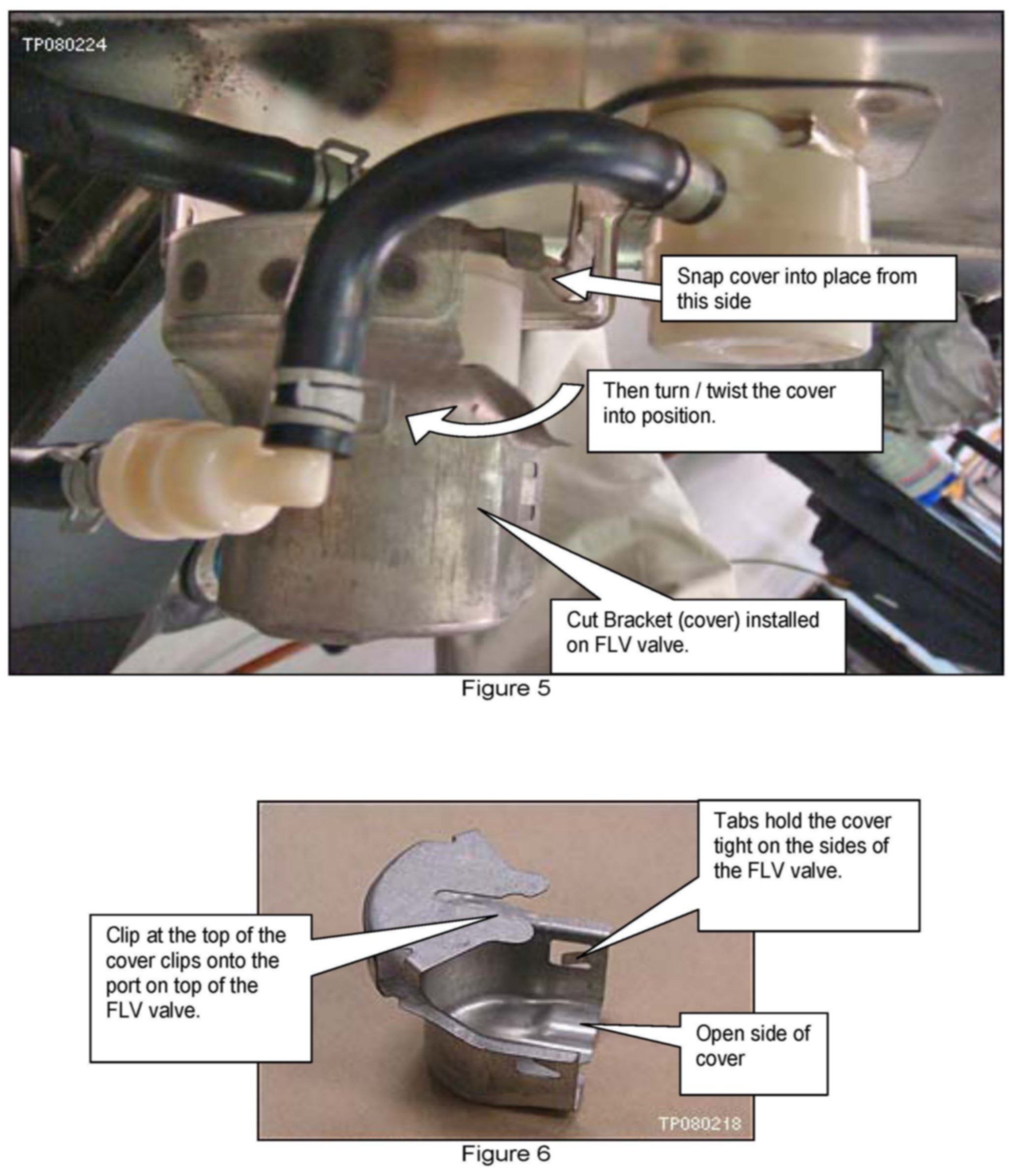 Install the Cut Bracket (cover) onto the Fill Limit Vent Valve (FLVV) inside the fuel tank (see Service Procedure).