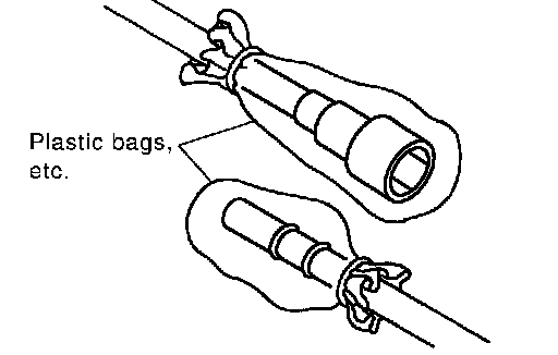 ^ To keep clean the connecting portion and to avoid damage and foreign materials, cover them completely with plastic bags or something similar.