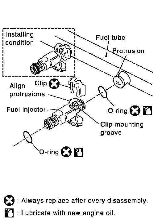 2. Install new O-rings to fuel injector paying attention to the following caution.