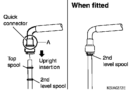 ^ Hold A position as shown in the figure when inserting fuel tube into quick connector.