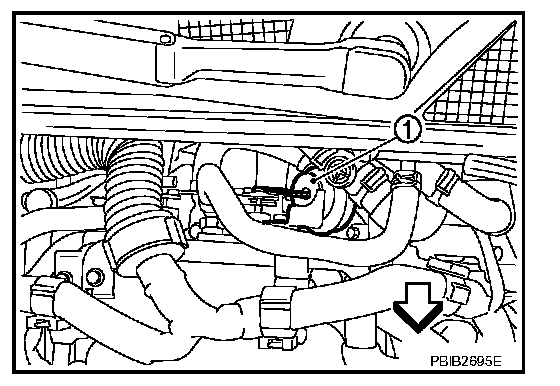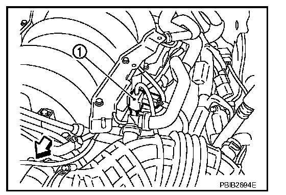 The VIAS control solenoid valve (1) cuts the intake manifold vacuum signal for power valve actuator. It responds to ON/OFF signals from the ECM. When the solenoid is off, the vacuum signal from the intake manifold is cut. When the ECM sends an ON signal the coil pulls the plunger downward and feeds the vacuum signal to the power valve actuator.