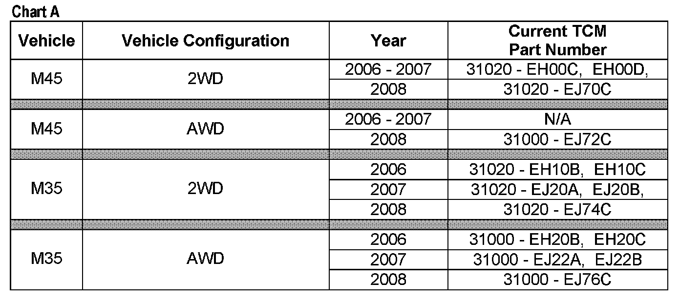^ Compare your vehicle's TCM P/N to those shown under Current TCM P/N in chart A above.