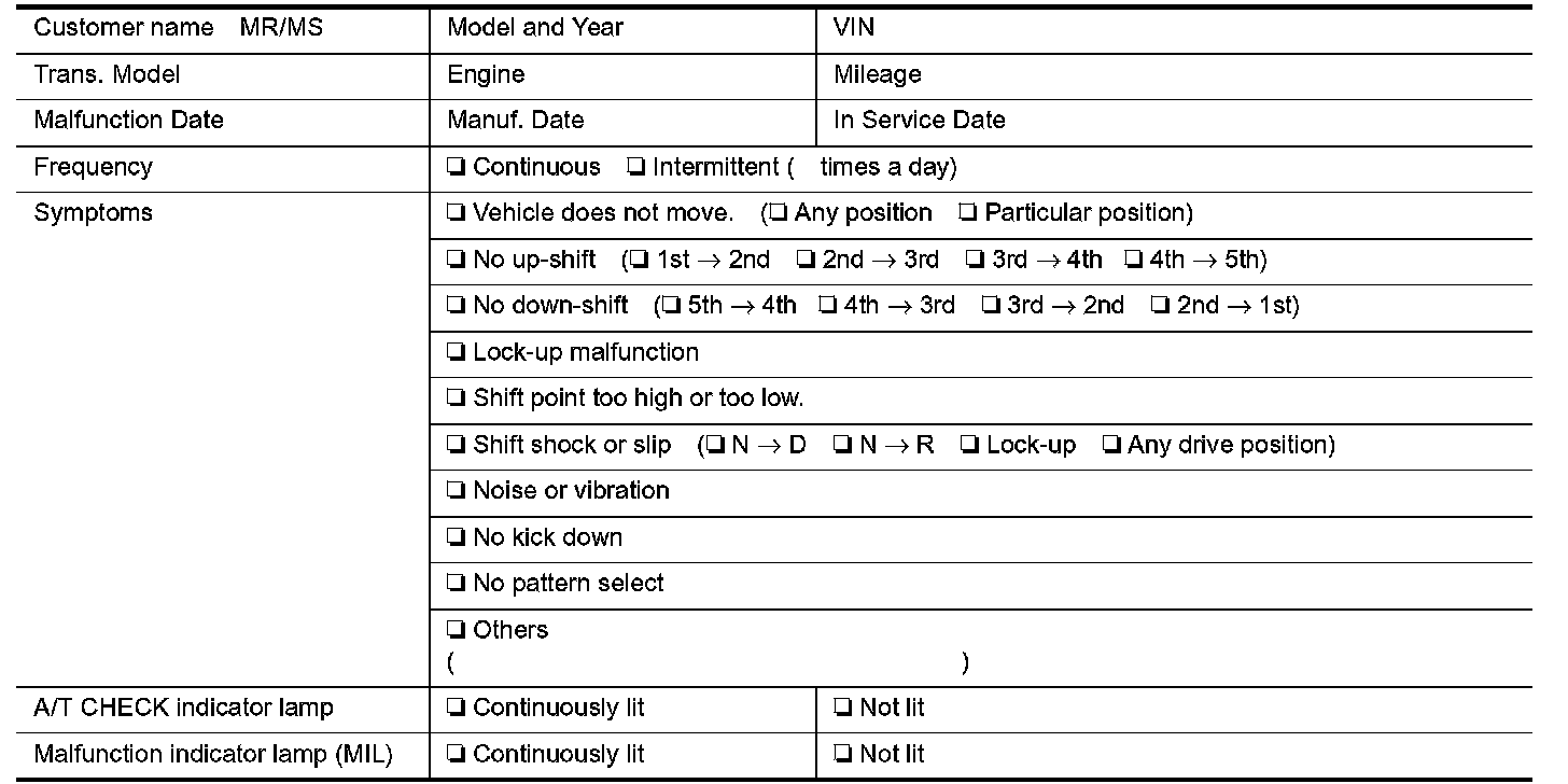 Diagnostic Worksheet Chart: