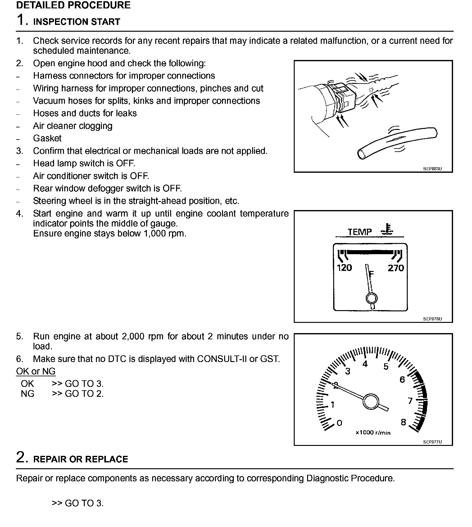 2. On air conditioner equipped models, checks should be carried out while the air conditioner is OFF.
