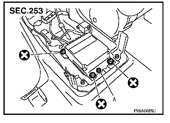 - Remove the diagnosis sensor unit fixing bolts, then remove ground bolt A.