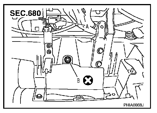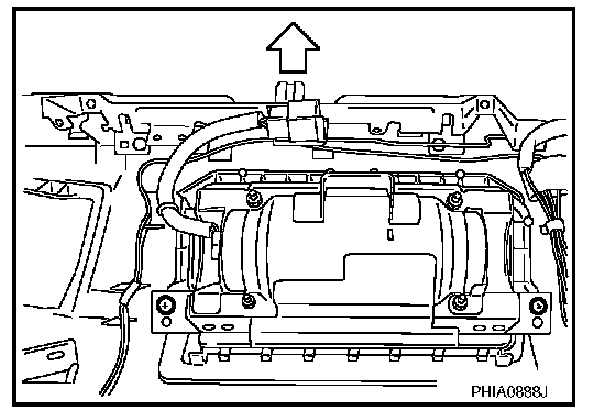 NOTE: The figure shows installed condition of the front passenger air bag module. (Under view of the module installed without glove box cover.)