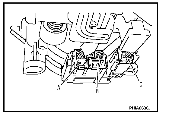 - Disconnect the steering wheel switch connector (shown as C in the figure).