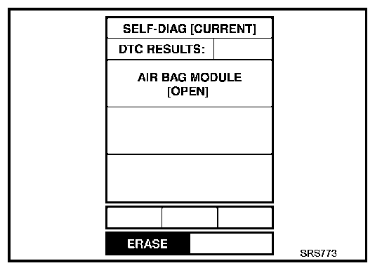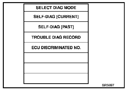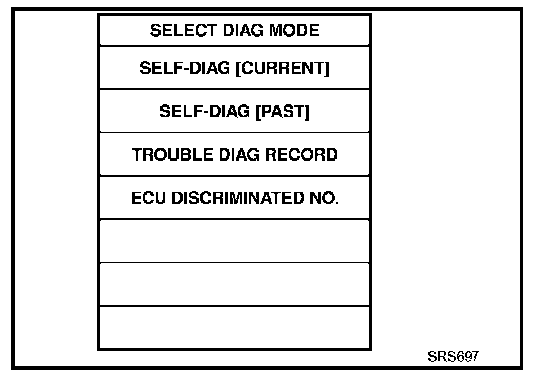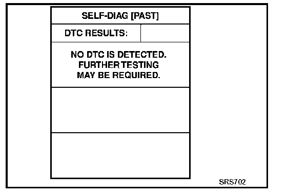 If any malfunction is detected on "SELF-DIAG [CURRENT]", the malfunctioning part is not repaired completely or another malfunctioning part is detected. Go to SRS-21, "DIAGNOSTIC PROCEDURE 2", Diagnostic Procedure 2 and repair malfunctioning part completely.