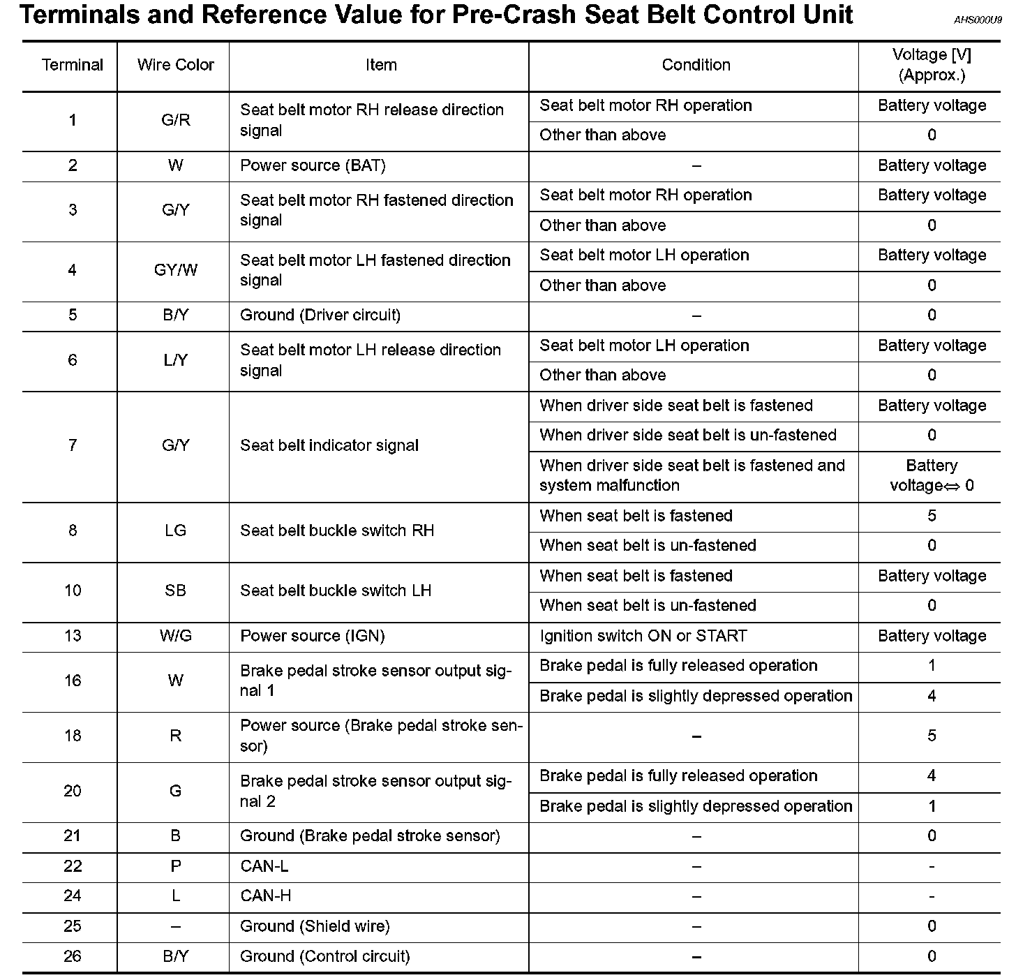 Pinout Values and Diagnostic Parameters