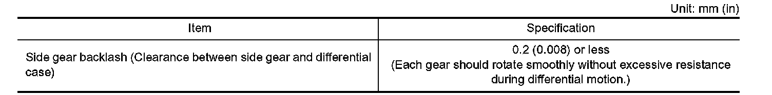 DIFFERENTIAL SIDE GEAR CLEARANCE: