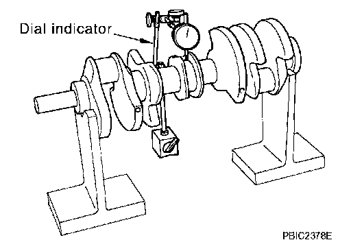 ^ While rotating crankshaft, read the movement of the pointer on dial indicator (total indicator reading).