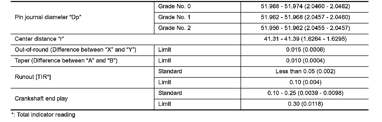 ^ If corrected, measure the bearing oil clearance of the corrected main journal and/or pin journal. Then select the main bearing and/or connecting rod bearing.
