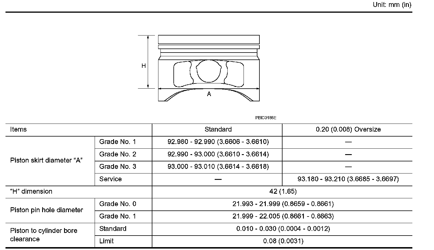 Standard: 92.980 - 93.010 mm (3.6606 - 3.6618 inch)