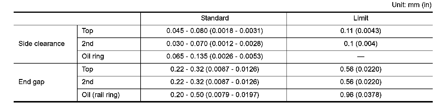 ^ If the measured value exceeds the limit, or if there are scratches and/or seizure on the cylinder inner wall, hone or re-bore the inner wall.