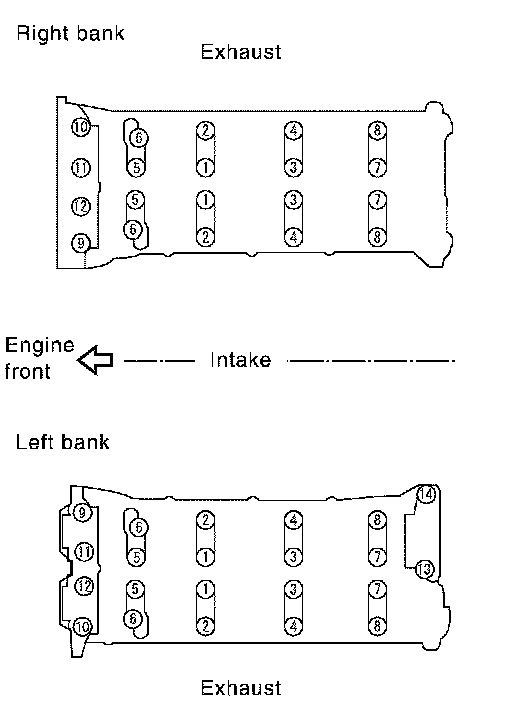 Tighten No. 13 to 14 in numerical order as shown. (Left bank only)