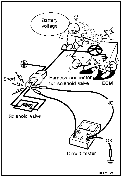 - Do not use ECM ground terminals when measuring input/output voltage. Doing so may result in damage to the ECM's transistor. Use a ground other than ECM terminals, such as the ground.