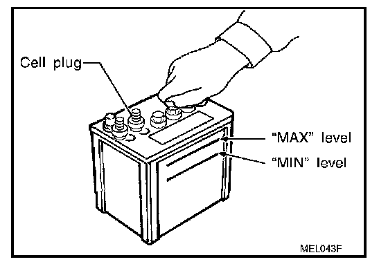 CHECKING ELECTROLYTE LEVELWARNING: Never allow battery fluid to come in contact with skin, eyes, fabrics, or painted surfaces. After touching a battery, never touch or rub your eyes until you have thoroughly washed your hands. If acid contacts eyes, skin or clothing, immediately flush with water for 15 minutes and seek medical attention.
