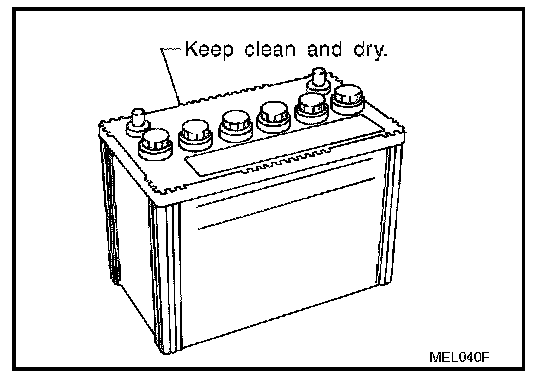- The battery surface (particularly its top) should always be kept clean and dry.