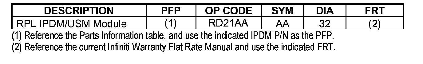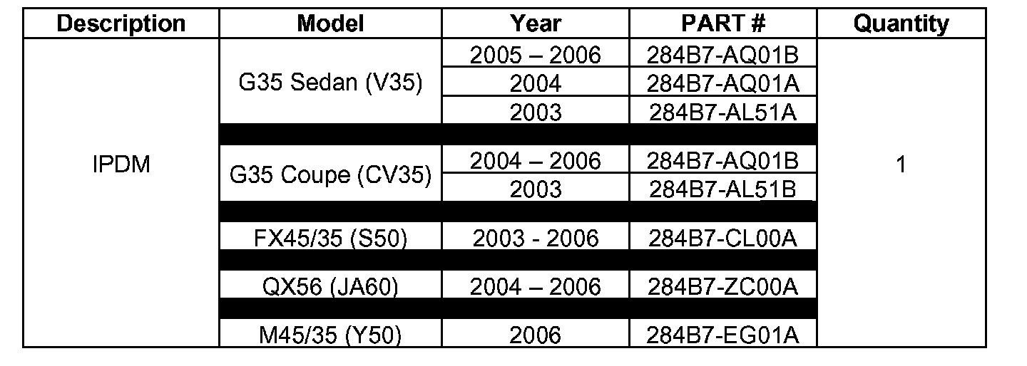 ^ For IPDM replacement information, go to the Service Manual, section PG, Removal and Installation of IPDM E/R.