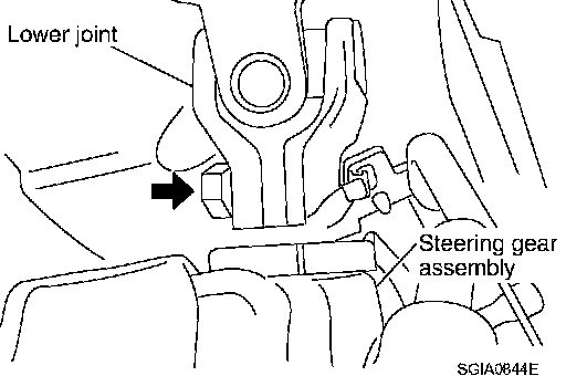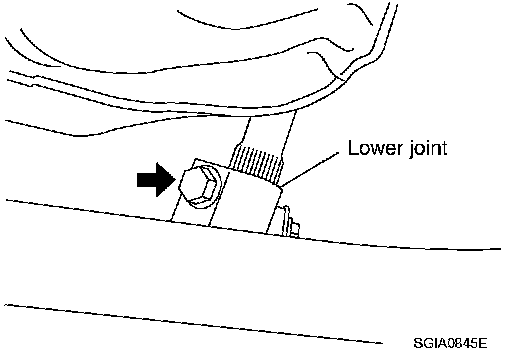5. Remove upper side fixing bolt of lower joint, then remove lower joint from lower shaft and steering gear assembly