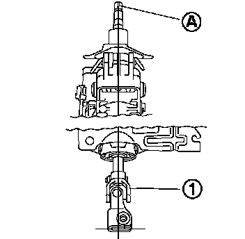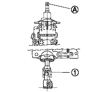 ^ When installing upper joint, the angle which upper joint yoke (1) forms with shaft center groove (A) should be at 90°.