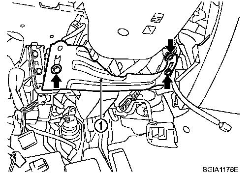 7. Remove fixing bolts of knee protector (1), then remove knee protector (1) from vehicle.