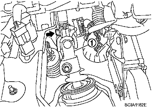 10. Remove fixing bolt of upper joint (1) (steering column assembly side).