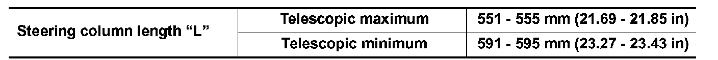 ^ Measure the length "L" as shown in the figure if vehicle has been involved in a minor collision. Replace steering column assembly if outside the standard.