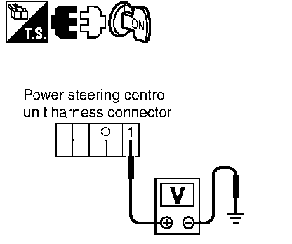 Turn ignition switch ON, and then check voltage between power steering control unit harness connector M8 and ground.