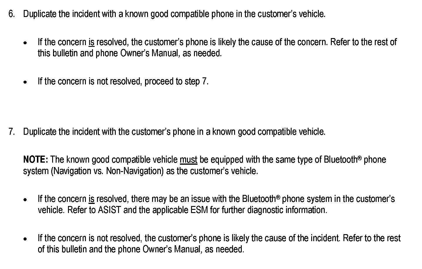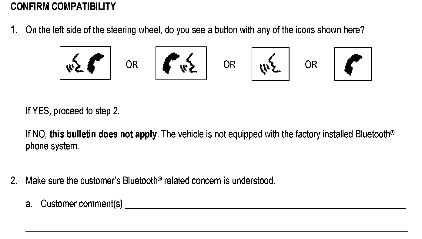 If a vehicle comes to the dealer with a Bluetooth(R) phone system related concern use this bulletin for initial diagnosis.