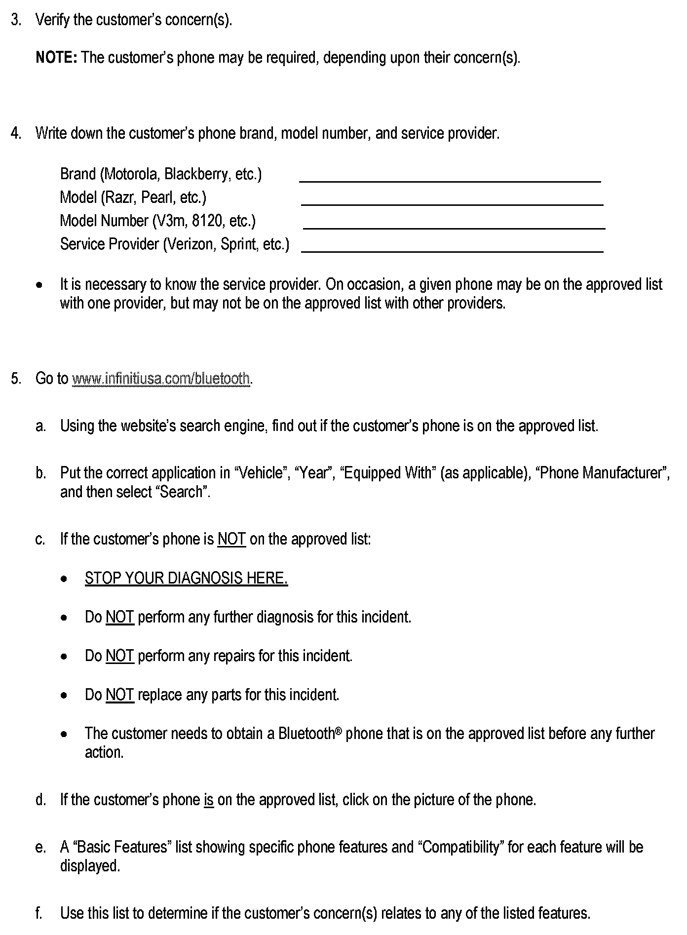 BLUETOOTH(R) PHONE SYSTEM; INITIAL DIAGNOSIS