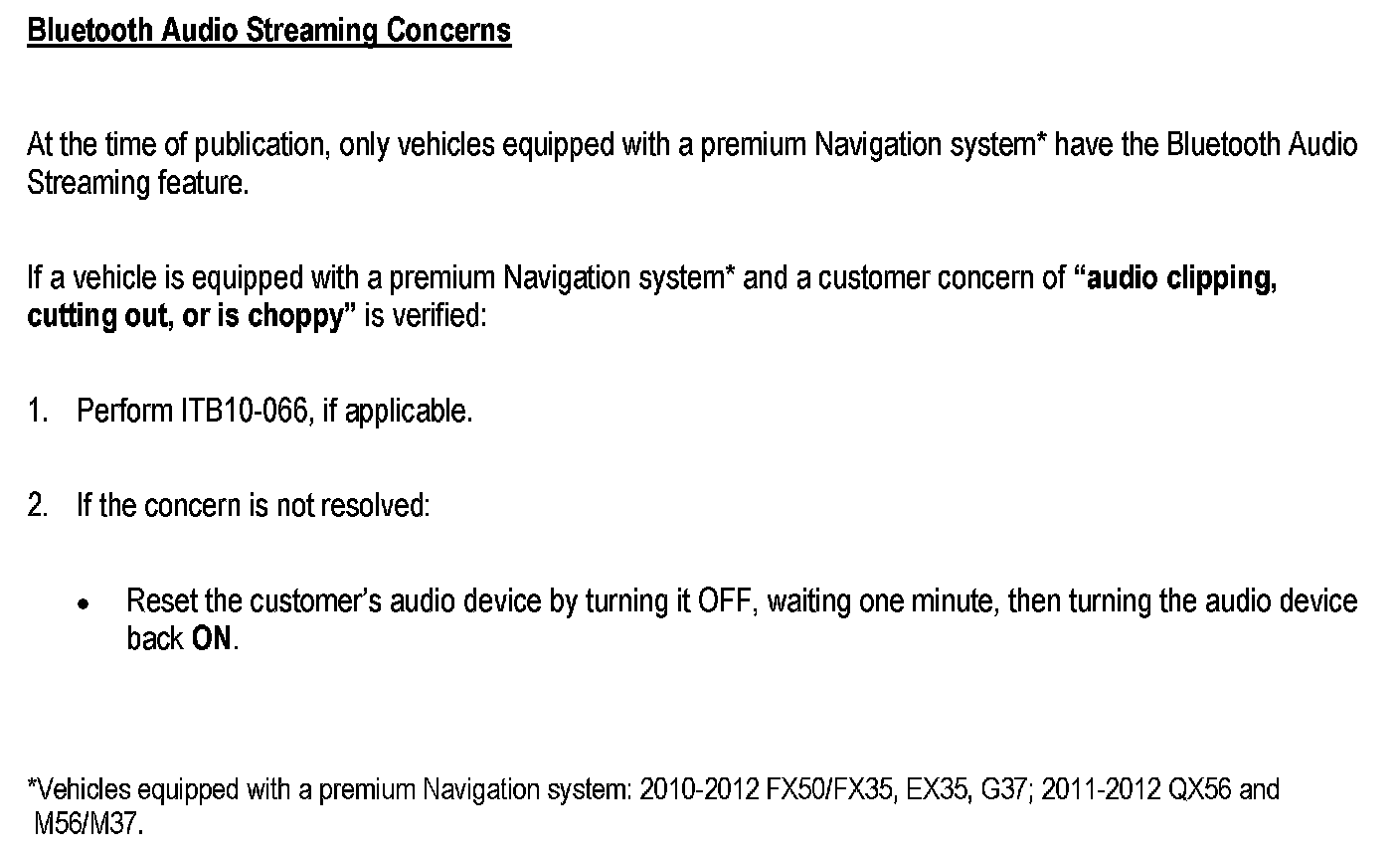 All Infiniti vehicles with factory equipped Bluetooth(R) phone system