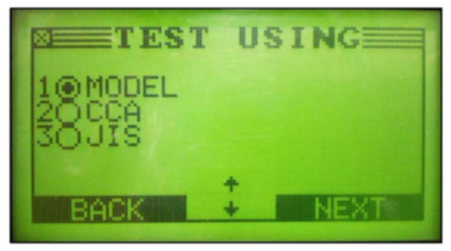 ^ If you must use the GR8 Battery Tester in a mode other than MODEL mode, JIS Mode MUST ALWAYS BE USED for JIS batteries otherwise an incorrect result will occur. NEVER test a JIS battery using the CCA test in the GR8; the test software in the GR8 is different for JIS and CCA modes. ANY CCA value you may have for a JIS-type battery is inaccurate for testing purposes.