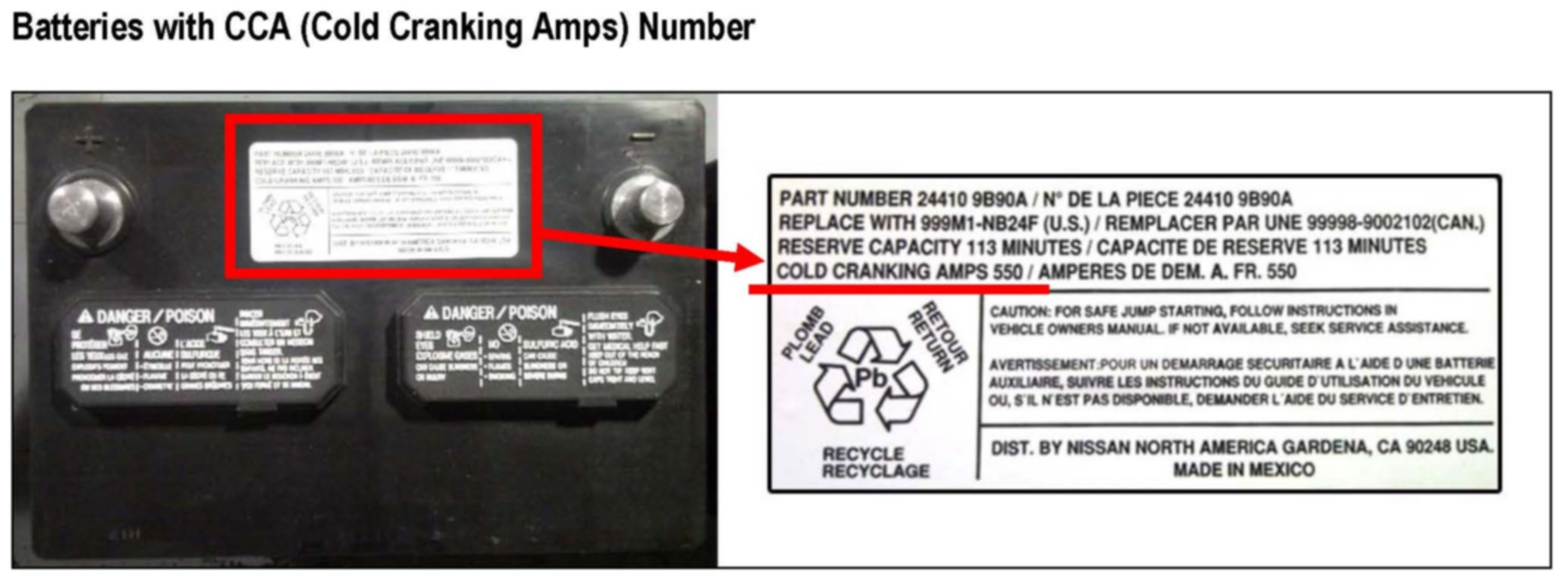 ^ Batteries installed in vehicles produced in North America have a CCA number displayed on the label attached to the top of the battery.