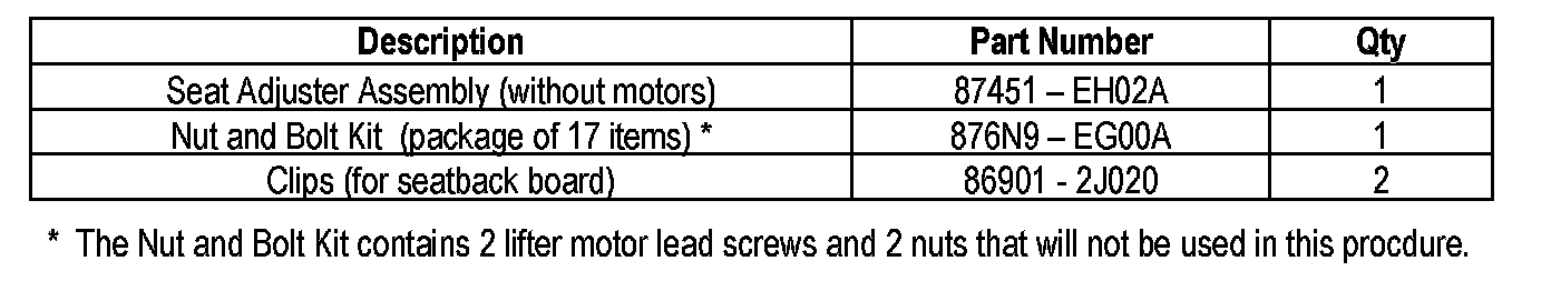 ^ Reuse all of the seat adjuster motors (reclining slide and lifter).