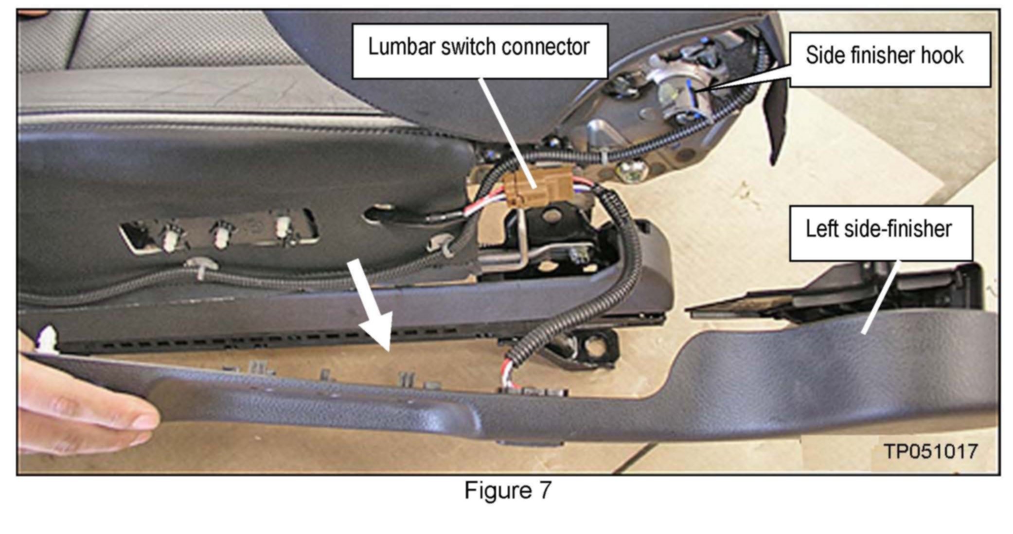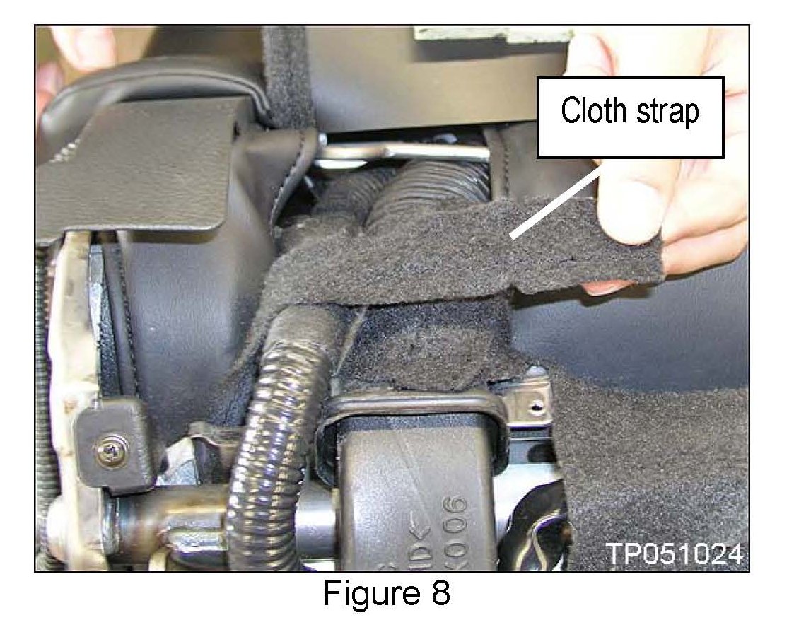 11. From the back of the seat (left side) unhook the fabric hook and loop fastener (cloth strap) shown in Figure 8.