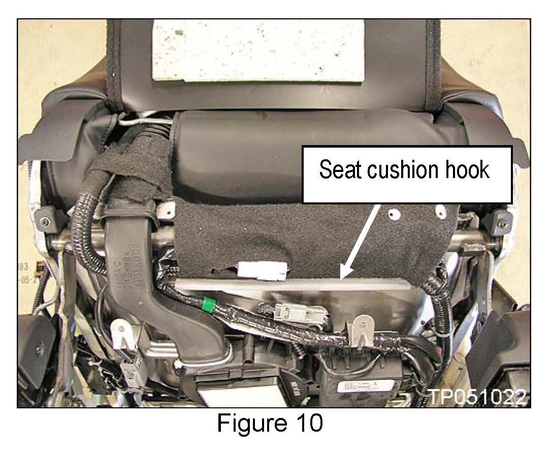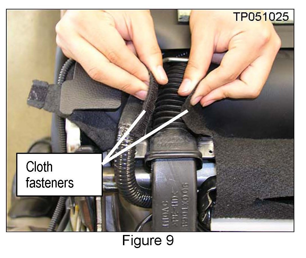 12. From the back of the seat (left side) unhook the fabric hook and loop fastener shown in Figure 9.