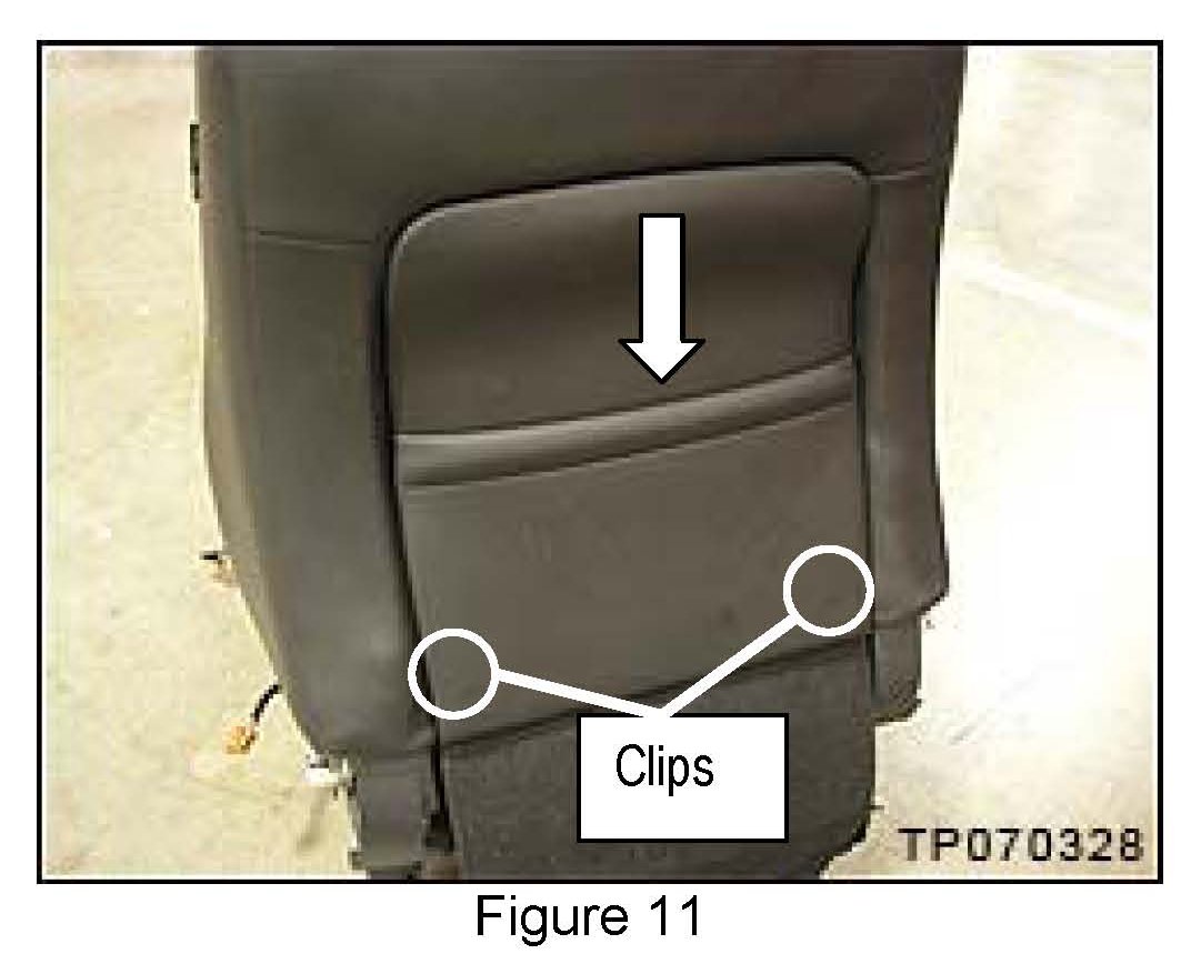 15. From the left side of the seat remove the 5 side air bag harness support clips shown in Figure 12.