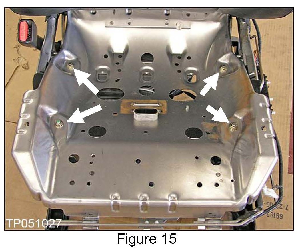 19. Remove the 4 seat cushion frame nuts shown in Figure 15.