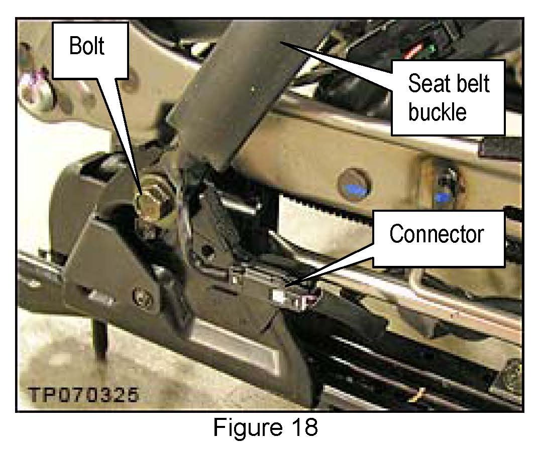 c. Install the buckle and bolt on the new seat adjuster assembly.
