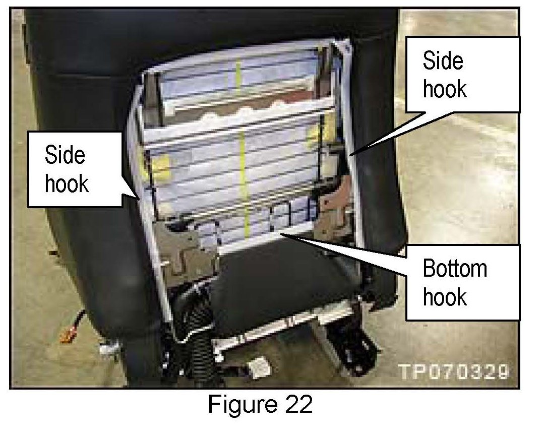 26. Unhook the plastic seatback trim hooks; both sides and bottom.