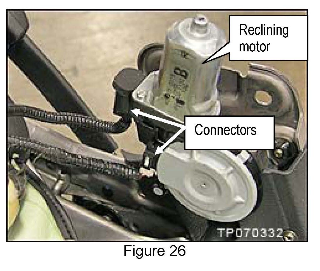 At this point you are ready to remove the seat back but the seat reclining motor is still electrically connected.
