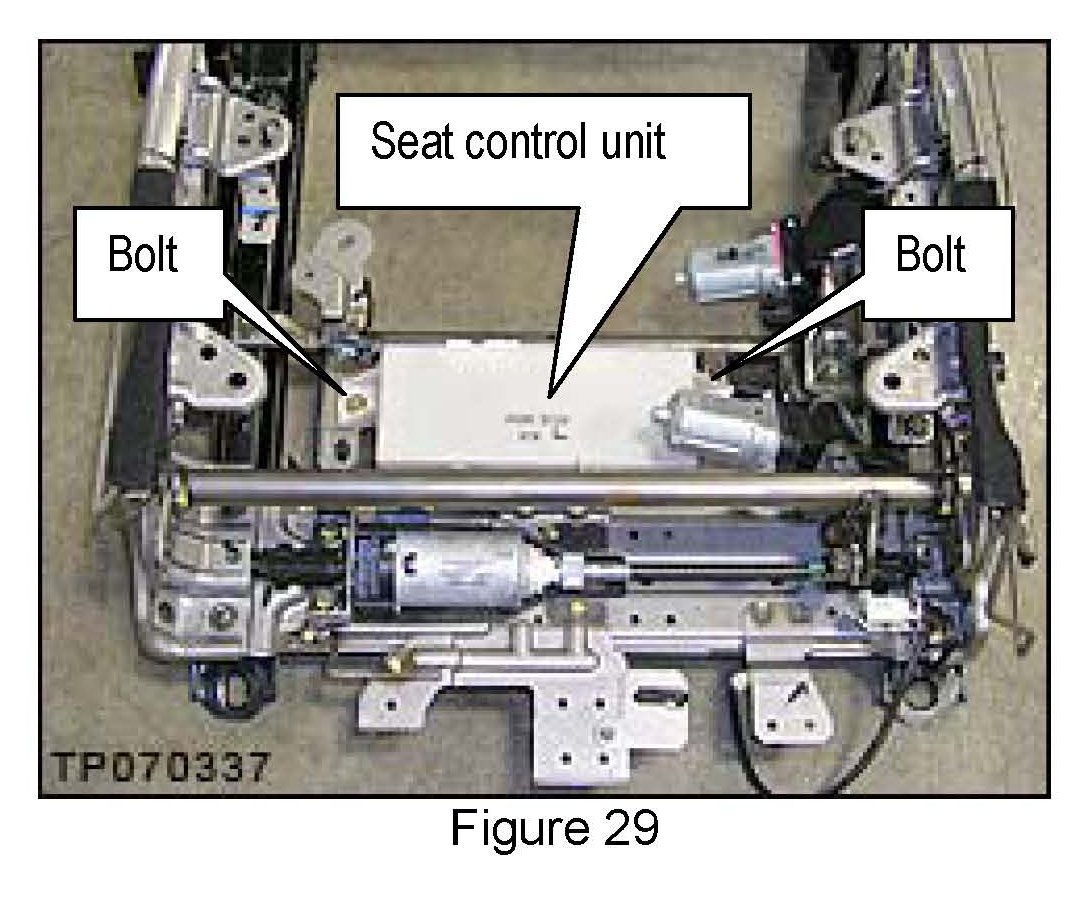 38. Remove the seat control unit; 2 bolts. Set the control unit aside for now.