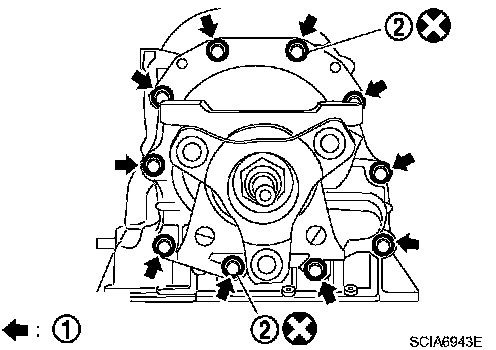 8. Remove tightening bolts (1) for output shaft & companion flange complement and A/T case.