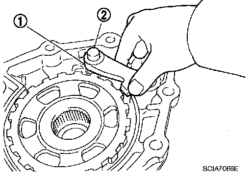 1. Install return spring (1) to parking pawl (2).