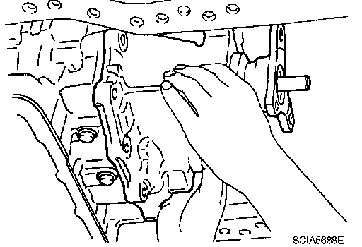 CAUTION: When setting transmission jack, be careful not to allow it to collide against the drain plug.