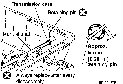 ^ Drive retaining pin to 5 ± 1 mm (0.20 ± 0.04 inch) over the A/T case.